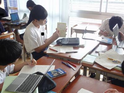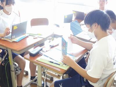 ビブリオバトルを行いました 投稿: 承認者 (10/16) 1学年の国語の時間に、グループに分かれてのビブリオバトル(本の紹介プレゼン)がありました。生徒たちは、自分が選んだ本の魅力を仲間に伝えるために工夫を凝らして発表していました。聞き手の生徒も真剣に耳を傾け、互いの考えを尊重し合う温かな雰囲気が感じられました。 0 -