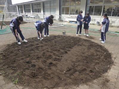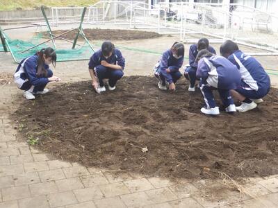 ボランティアの生徒たちが、ネモフィラの種を丁寧にまきました。小さな種から始まる大きな彩り、春には花壇いっぱいの青い花が咲くのが楽しみです!