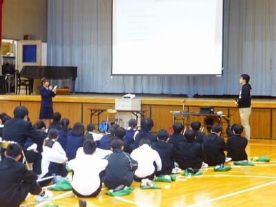 講演では、大使の実体験を交えながら、「課題を見つけ、自ら考え、行動していくことの大切さ」について、わかりやすくお話してくださいました。生徒たちは、大使の方の言葉に真剣に耳を傾け、「自分にもできる挑戦とは何か」を考える貴重な機会となりました。