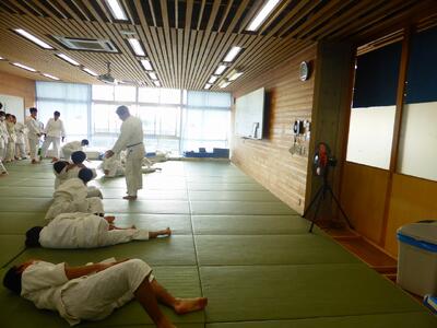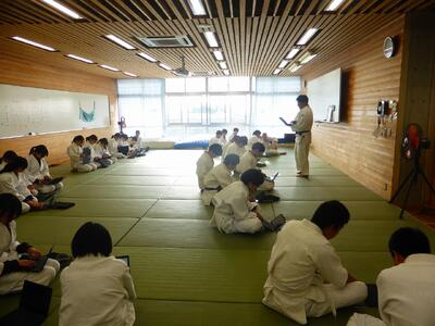 職員が実際に110番通報を行うなどより実践的な訓練となりました。スクールサポーターさんから生徒へ、「登下校中に不審者を見かけたらとにかく距離をとり、危険を感じたら逃げることが最も大切で、その際は荷物等を手放して身軽になると素早く逃げることができる。」など、具体的な安全確保のポイントを教えていただきました。