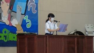第2学期始業式が行われ、各学年の代表生徒から2学期の抱負が述べられました。