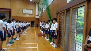1校時に体育祭全体練習を荒天のため体育館で実施しました。生徒会役員と体育委員を中心に開閉会式の練習を行いました。