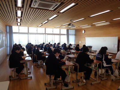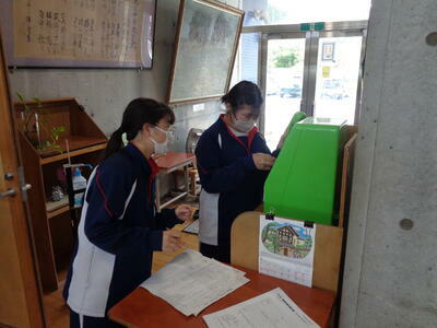 風の強い朝でしたが、生活委員が正門前で挨拶運動を行っています。昇降口の靴箱を見ると、きちんとかかとをそろえて入れてありました。教室では、落ち着いた雰囲気で読書に取り組んでいました。