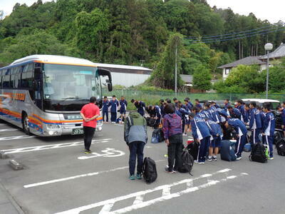 6時20分、会場である水戸信用金庫スタジアム(笠松)へ向けて、選手たちが出発しました。校長先生からは「周囲からの支えを当たり前のことと思わないことで、感謝の気持ちが生まれる。感謝の気持ちを持つことが、人としての成長につながる。これまでの練習でお世話になったグランドにも、感謝を伝えてから出発しよう!」とのお話がありました。練習の成果を発揮し、選手一人一人が活躍できることを祈っています。