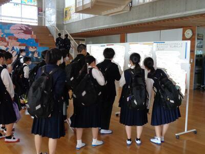 県北陸上大会で大活躍した選手たち!男・女ともに総合優勝、そして3年連続の男女総合優勝となりました。応援いただいた保護者の皆様、地域の皆様、ありがとうございました。会場から送られてきた結果を暇修ホールに掲示すると、生徒は食い入るように眺めていました。