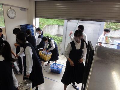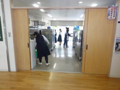 給食委員のみなさんは、パントリーの後片付けを担当しています。仲間と協力する姿がとても頼もしいです。